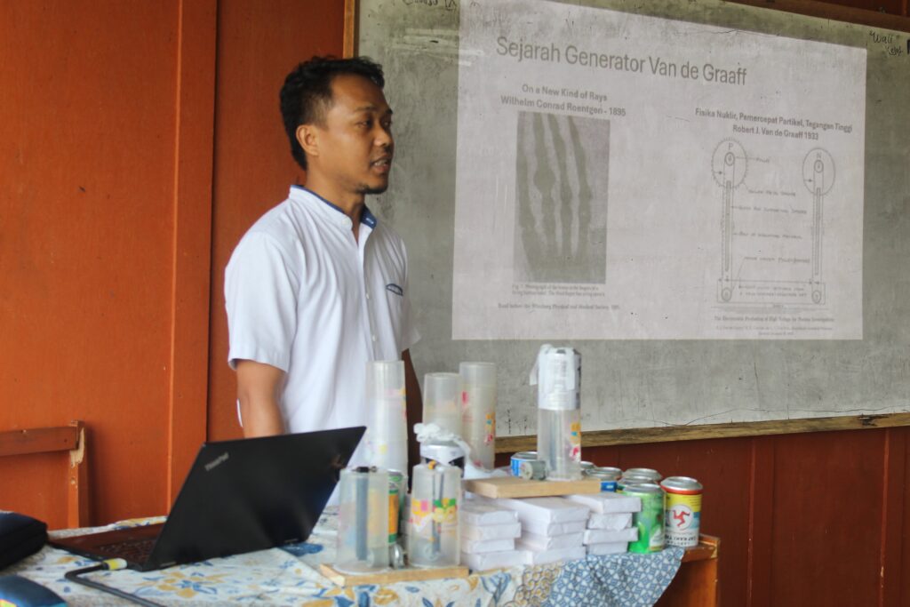 Dalam kegiatan ini, tim dosen , mahasiswa dan Alumni Fisika UIN Bandung menghadirkan berbagai inovasi pembelajaran sains berbasis praktik langsung. Para siswa diajak untuk mengenal dan mencoba pembuatan alat praktikum listrik statis berupa Generator Van de Graaff, pengamatan matahari menggunakan teleskop, serta eksperimen robot soccer digital yang menggabungkan konsep fisika, teknologi, dan rekayasa.